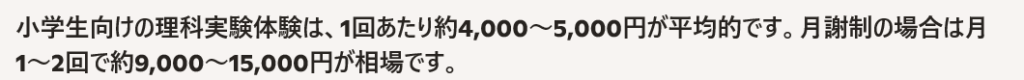 AIに理科実験体験は相場どのくらいかかるか聞いてみると・・・