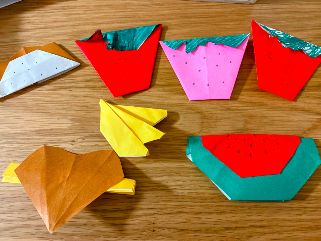 今回も日曜日が雨予報だったため、折り紙の絵本を借りてお家遊びに役立てました!