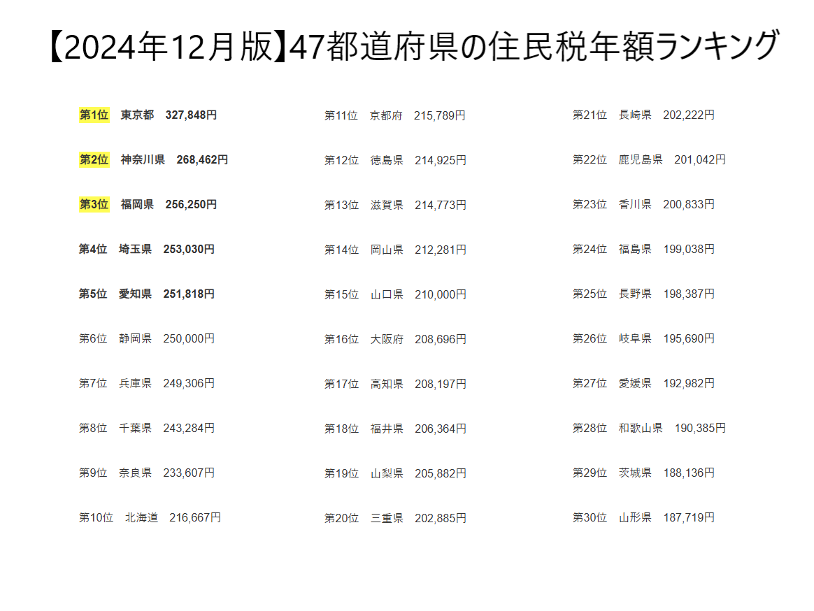 47都道府県の住民税年額ランキングと、あなたが住む地域の平均住民税年額がいくらで、全国平均と比べてどうですか?!