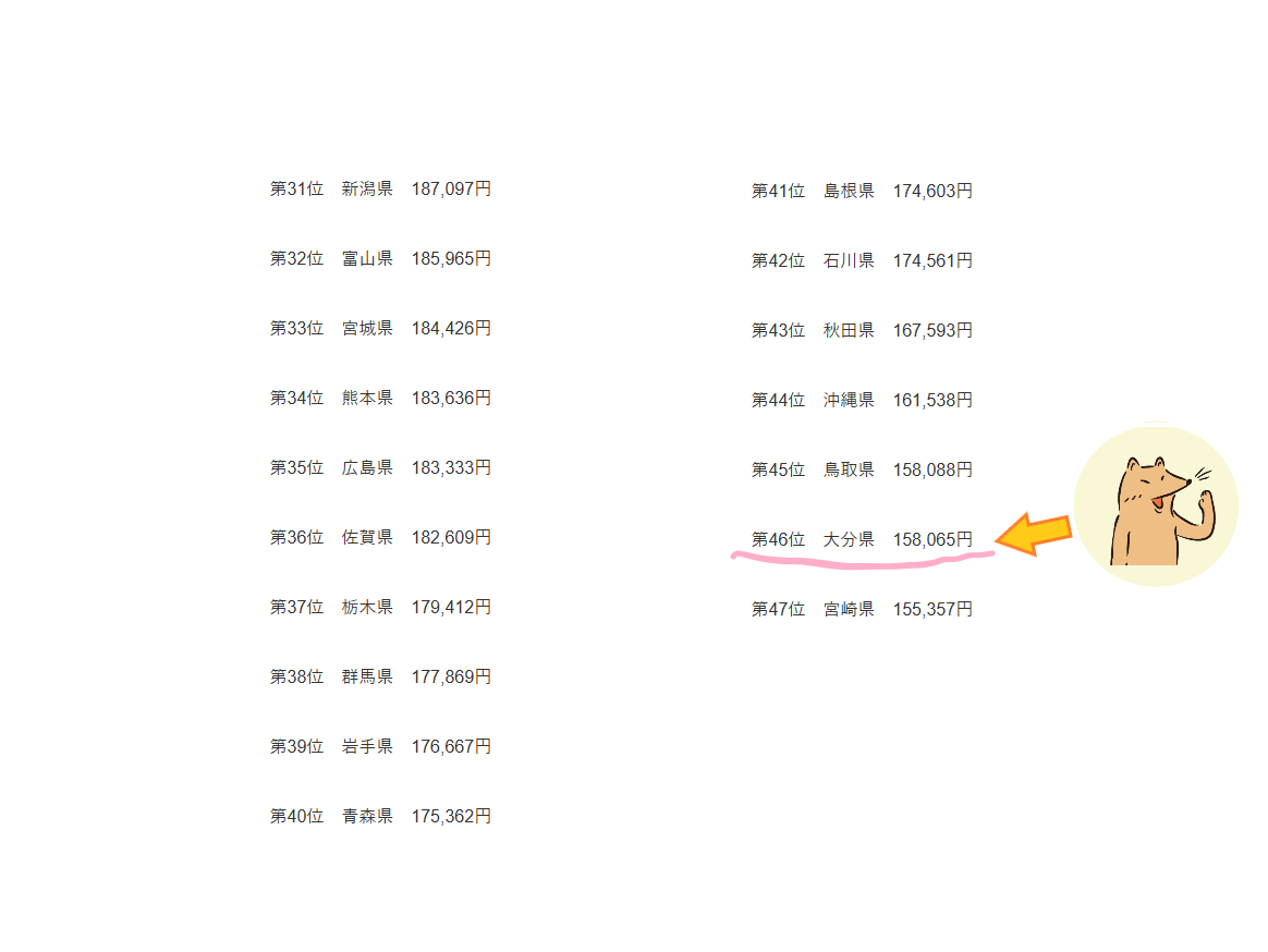 私が住む大分県は46位とかなりいい順位ですが